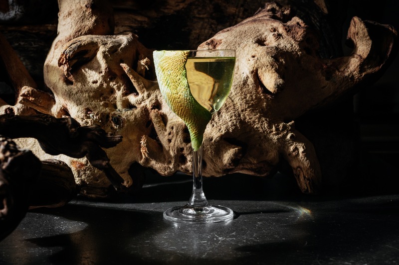 Гранитные скалы, напоминающие спину гигантского мифического существа, вдохновили самый дерзкий коктейль карты. Мескаль, перечный ликёр, устричный соус, лимонный перец и паприка создают мощный, дымный и минералистичный вкус — словно дыхание древнего зверя.