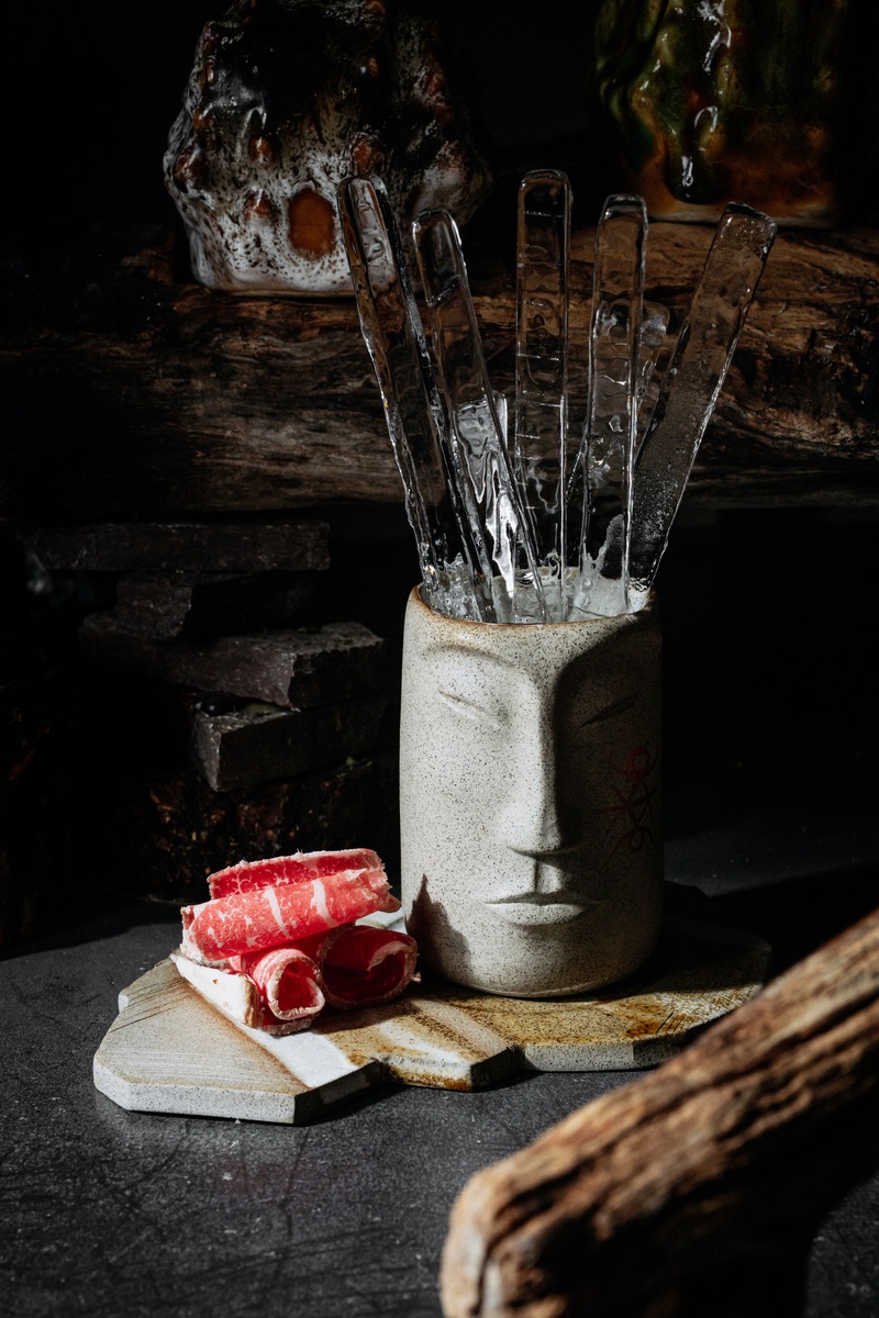 Символ древнего культа, каменный столп, о котором слагали истории охотники и кочевники. В интерпретации бара — это микс дистиллята грибов, томатной воды и ликёра из розы. Земля, цветок и плод — три стихии, соединённые в одном бокале.