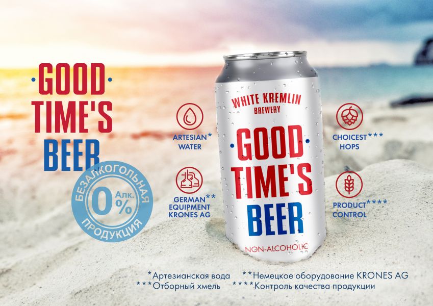 «Белый кремль» выпустил безалкогольный лагер для активного отдыха Good Time’s Beer